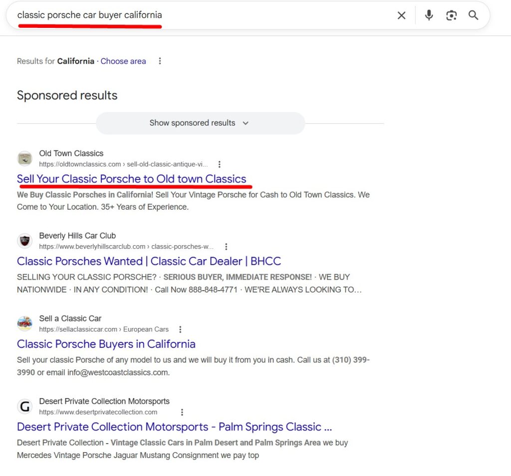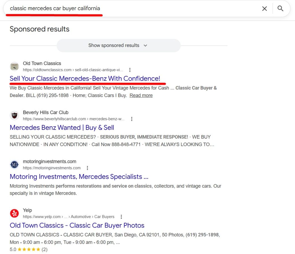 • Built pages for specific searches like “Classic Porsche buyer” and “Classic Mercedes buyer”